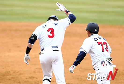 ‘2014 한국야쿠르트 세븐 프로야구’ 개막전 두산 베어스와 LG 트윈스의 경기가 29일 오후 잠실구장에서 열린 가운데 두산 칸투가 3회말 2사 1,3루 상황 홈런을 치고 있다.