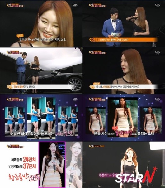 특히 ‘한밤’ 제작진은 강민경의 제안으로 즉석에서 줄자로 강민경의 신체 사이즈를 측정했고 측정 결과 허리둘레는 24인치, 골반 둘레는 37인치가 나와 환상적인 몸매 비율을 자랑했다.