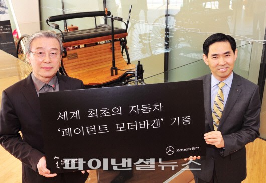 메르세데스-벤츠 코리아는 8일 서울 중구 동대문디자인플라자(DDP)에서 세계 최초의 자동차 '페이턴트 모터바겐' 기증식을 가졌다. 페이턴트 모터바겐은 1886년 벤츠의 창립자인 칼 벤츠가 세계 최초로 발명한 자동차이자 세계 첫 특허를 받아 자동차 역사의 시작을 알린 차다. '2011년 서울모터쇼'에서 소개된 바 있으며 지난해 한·독 수교 130주년을 기념해 메르세데스-벤츠 코리아가 서울시에 기증하기로 약속한 바 있다. 페이턴트 모터바겐은 지난달 21일 개관한 동대문디자인플라자 내에 상설 전시될 예정이다. 기증식에 참석한 최덕준 메르세데스 벤츠 세일즈 부문 부사장은 "메르세데스-벤츠의 역사뿐만 아니라 인류의 자동차 산업 발전에 상징적인 의미를 가진 페이턴트 모터바겐을 서울시민과 공유하게 돼 매우 기쁘게 생각한다"면서 "이번 기증을 통해 시민들이 자동차의 역사를 알아가는 데 큰 도움이 되길 바란다"고 말했다.