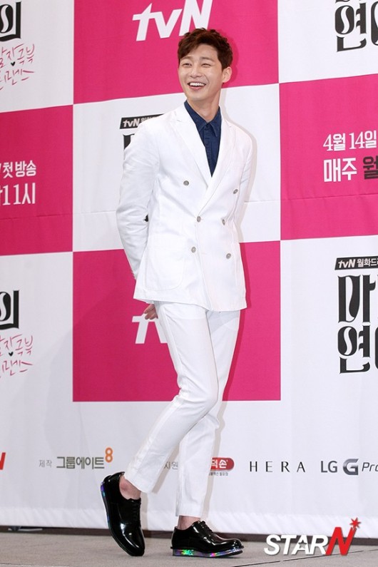 배우 박서준이 9일 오후 서울 강남구 논현동 임피리얼 팰리스 서울에서 열린 tvN 월화드라마 ‘마녀의 연애’ 제작발표회에 참석해 포토타임을 갖고 있다.