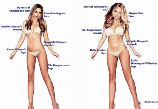 "남성들은 킴 카다시안의 S라인 몸매를, 여성들은 엠마 왓슨의 날씬한 엉덩이를 가장 이상적인 여성의 몸매라고 생각한다."