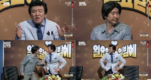‘SNL 코리아’ 주병진과 신동엽이 디스전으로 웃음을 자아냈다.