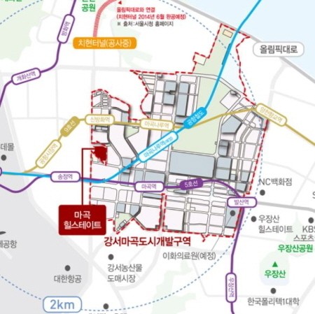 최진욱 현대건설 마곡 힐스테이트 분양소장은 “마곡지구 개발을 추진하기 전부터 재건축 사업을 진행하던 곳이라 위치상 마곡지구임에도 행정상 공항동으로 돼 있다”며 “하지만 마곡지구와 지역난방을 공유하고 있고 위치도 실질적인 마곡지구이므로 앞으로 마곡동에 편입될 가능성이 높다”고 말했다.