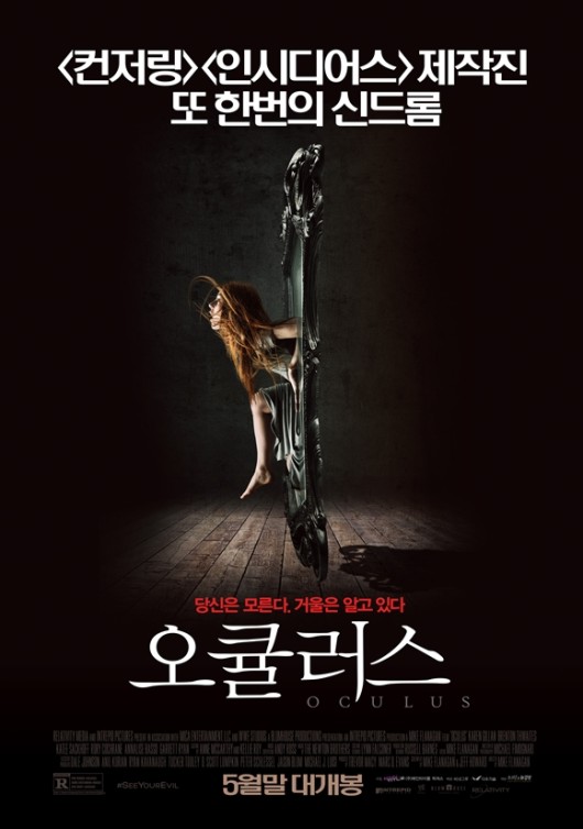 ‘오큘러스’는 10년 전 살인사건의 진범이 거울짓이라고 믿으며 기이한 현상을 조사하게 된 남매의 이야기를 그린 작품으로 2013년 개봉해 국내 개봉 공포외화 중 최고 흥행 수익을 기록한 ‘컨저링’과 이에 못지않은 관객을 동원한 ‘인시디어스: 두번째 집’의 제작진이 참여했다.