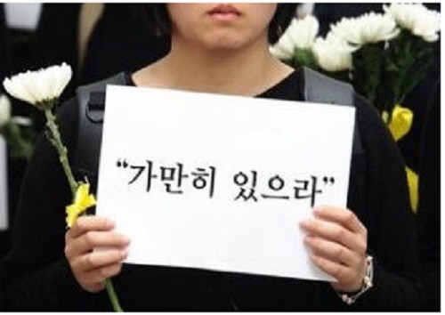 "가만히 있으라"는 말은 세월호 침몰 당시 '현재 위치에 머물라'는 선내방송을 가리키는 것으로 풀이된다.