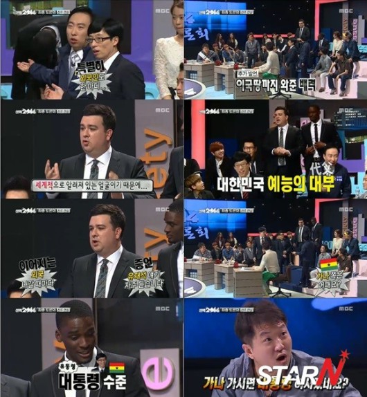 또한 샘 오취리도 가나쪽에서 유재석의 인기가 어느 정도냐고 묻는 질문에 “대통령 수준이다”라고 이야기했고, 정형돈은 그를 보며 “가나에서 대통령 하시면 되겠네요?”라고 말해 모두를 폭소케 했다.