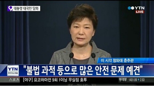 박 대통령은 참사 34일째인 이날 청와대 춘추관에서 발표한 담화에서 "이번 세월호 사고에서 해경은 본연의 임무를 다하지 못했다 사고 직후에 즉각적이고, 적극적으로 인명 구조활동을 펼쳤다면 희생을 크게 줄일 수도 있었을 것"이라며 "해경의 구조업무가 사실상 실패한 것"이라고 말했다.