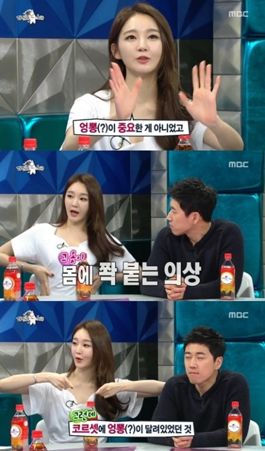 이날 강민경은 과거 '엉덩이뽕' 일명 '엉뽕' 사건에 대해 이야기했다. 그는 "옷이 타이트해서 배를 눌러주는 보정 속옷을 입었다. 코르셋에 엉뽕이 달려 있었는데 카메라 플래시가 터지니까 그 보형물이 보였다"고 말했다.
