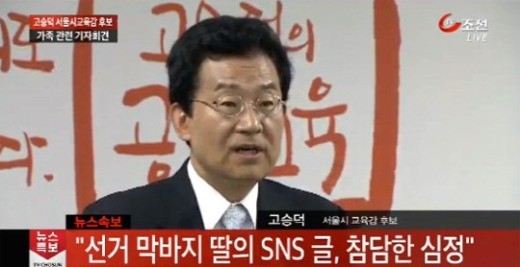 고승덕 서울시 교육감 후보가 딸 고희경 씨의 글에 논란에 휩싸였다.