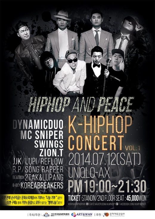'2014 K-HIPHOP Concert HIPHOP & PEACE'는 다음달 12일 서울 광진구 악스홀에서 펼쳐진다.