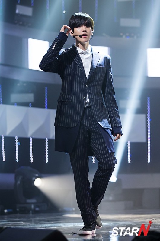 그룹 엑소 백현이 5일 오후 서울 마포구 상암동에 위치한 CJ E&M 센터에서 진행된 엠넷 'M! Countdown (엠카운트다운/379회)'에서 무대를 선보이고 있다.