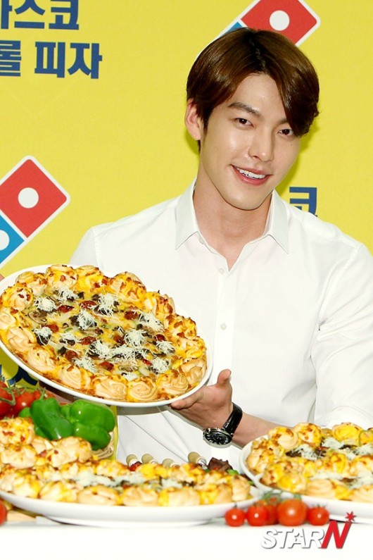 배우 김우빈이 10일 오전 서울 종로구 세종로 세종문화회관 예술동 예인홀에서 열린 도미노피자 신제품 출시 기념 행사에서 포즈를 취하고 있다.