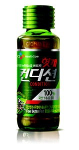 CJ헬스케어의 숙취해소제 '헛개컨디션(사진)'이 신곡 '행오버(Hangover : 숙취)'와 함께 돌아온 가수 싸이 덕분에 해외시장에서 광고효과를 톡톡히 보고 있다.