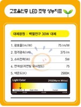 따라서 소비자의 경우엔 LED조명 제품 뒷면에 표시된 '정격광속'과 '정격전력' 수치를 보고 이것을 나눠봐야 광효율이 얼마인지 알 수 있는 셈이다.