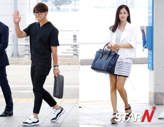 비-김태희의 고깃집 데이트가 공개된 가운데 두 사람의 공항패션이 새삼 화제다.