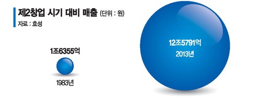 조석래 효성그룹 회장은 1983년 6월 29일 일생일대의 결단을 내린다. 당시 24개에 달하는 계열사를 합병, 매각, 청산 등을 통해 8개 기업으로 대폭 정리한다는 '그룹 경영 정상화 방안'을 전격 발표한 것이다. 이는 오일쇼크로 악화된 그룹 재무구조를 획기적으로 개선하기 위한 '고육지책'이었다. 조 회장이 선대 회장인 고 조홍제 효성 창업주로부터 1982년 기업을 승계받은 지 1년 만에 '제2의 창업'을 선언한 셈이다. 조 회장의 선택은 옳았다. 올해로 제2의 창업을 선언한 지 31년을 맞은 효성은 그동안 숱한 위기를 극복하고 한국을 대표하는 글로벌 소재·화학기업으로 성장했다. 매출액은 1983년 대비 약 8배 늘어났다.