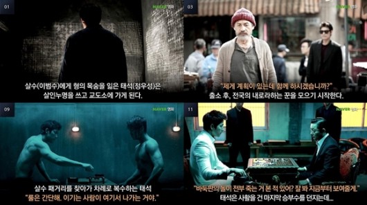 온 사방의 벽이 바둑판으로 가득 찬 교도소로 시작하는 강렬한 스틸은 앞으로 펼쳐질 태석(정우성 분)의 완벽한 복수를 암시하는 듯하다.