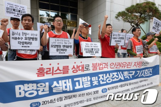 끝으로 “복지부는 돈벌이에 눈이 멀어 노숙인의 인권을 유린하는 B요양병원을 조사하고 책임자를 처벌하라”며 “노숙인을 유인하는 요양병원의 이같은 문제는 열악한 노숙인 복지에서 기인한다는 사실을 인지하고 노숙인 복지와 의료지원체계 개선을 위한 대책을 마련하라”고 촉구했다.