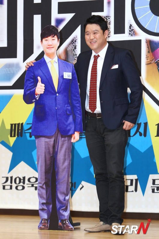 방송인 김구라가 2일 오후 서울 양천구 목동 SBS 사옥에서 열린 SBS ‘매직아이’ 제작발표회에 참석한 가운데 배성재 아나운서 판넬과 함께 포토타임을 갖고 있다.