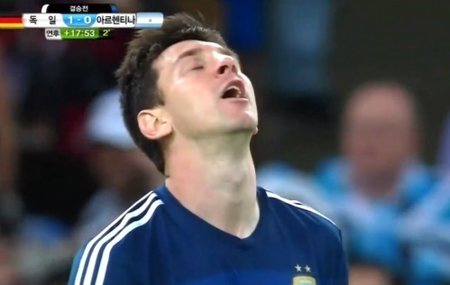 14일(한국시간) 브라질 리우데자네이루의 마리카낭 경기장에서 펼쳐진 2014 브라질월드컵 결승전에서 아르헨티나는 독일에 0대 1로 졌다.아르헨티나는 경기에 패했지만 메시는 최우수선수, 골든볼을 수상했다.