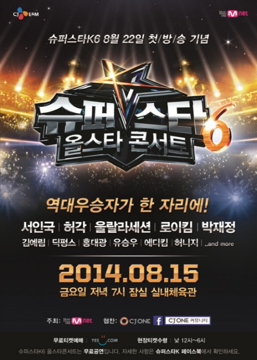 올해로 세 번째 개최되는 ‘슈퍼스타K 올스타 콘서트’는 오는 8월 22일 시즌6 첫 방송을 축하하기 위해 개최되는 일종의 ‘개막 기념공연’이다.