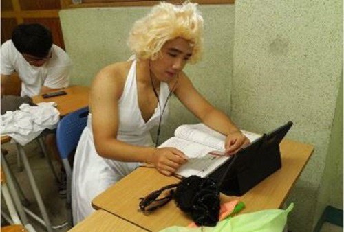 최군은 '마릴린 먼로' 분장을 선택한 이유에 대해 "인터넷을 찾아보니 아직까지 어느 학교에서도 마릴린 먼로는 없었다"며 "친구들의 반응은 아침부터 그렇게 입고 있으니 '더럽다'부터 해서.."라고 말해 웃음을 자아냈다.