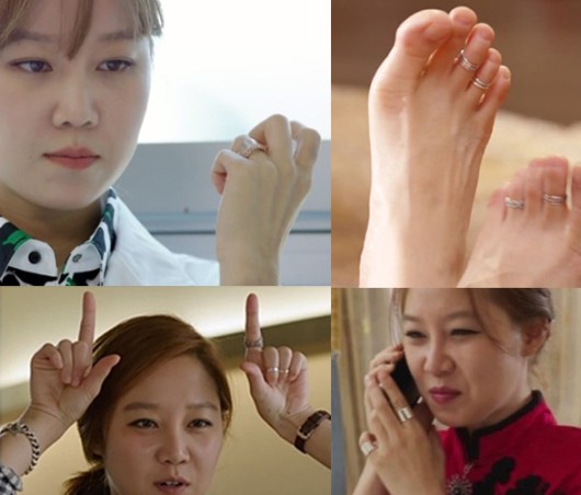 이번 작품에서 공효진은 발가락에 반지를 낀 '토우링' 룩도 새롭게 선보였다. 토우링이란 손가락에 끼는 반지처럼 발가락에 끼는 장신구를 뜻한다. 최근 여성들 사이에서 유행하고 있는 패션 아이템인 토우링은 샌들처럼 발가락이 노출되는 신발을 신을 때 포인트를 주는 아이템으로 활용되고 있다. 이처럼 독특한 주얼리 스타일링은 패션지수를 한 단계 업그레이드 시켜주는 요소가 된다.