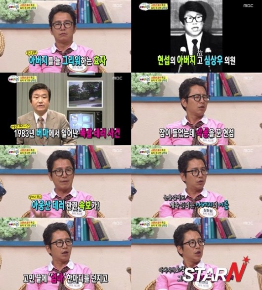 이날 방송에서 심현섭은 “아버지가 ‘아웅산 테러로 돌아가셨다”라며 말문을 열었다. 아웅산 테러사건은 지난 1983년 미얀마에서 일어난 폭발 테러사건이다.