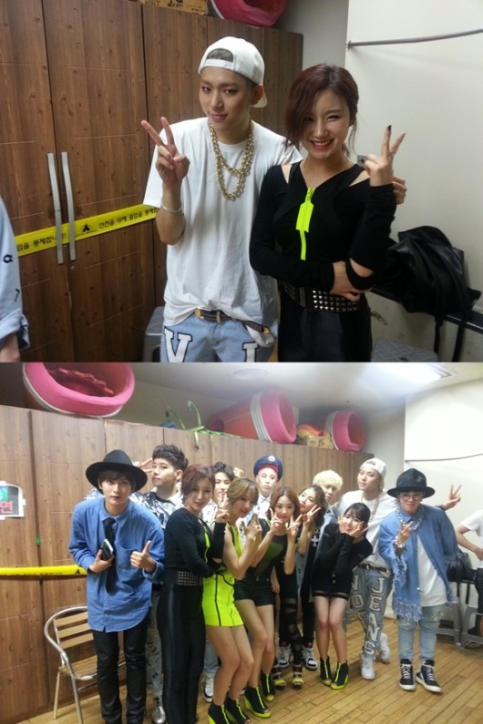 5인조 걸그룹 딜라잇이 대세그룹 블락비와의 인증샷을 공개했다.