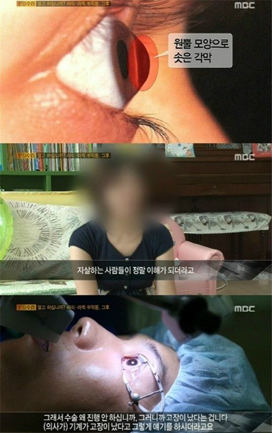 지난 5일 방송된 MBC 'PD수첩'에서는 라식·라섹 등 시력교정 수술 이후 부작용을 겪고 있는 사람들의 모습이 전파를 탔다.