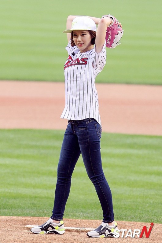 ‘2014 한국야쿠르트 세븐 프로야구’ KIA 타이거즈와 LG 트윈스의 경기가 22일 오후 잠실구장에서 열린 가운데 경기 전 Xtm 아나운서 연상은이 시구행사에 참석했다.