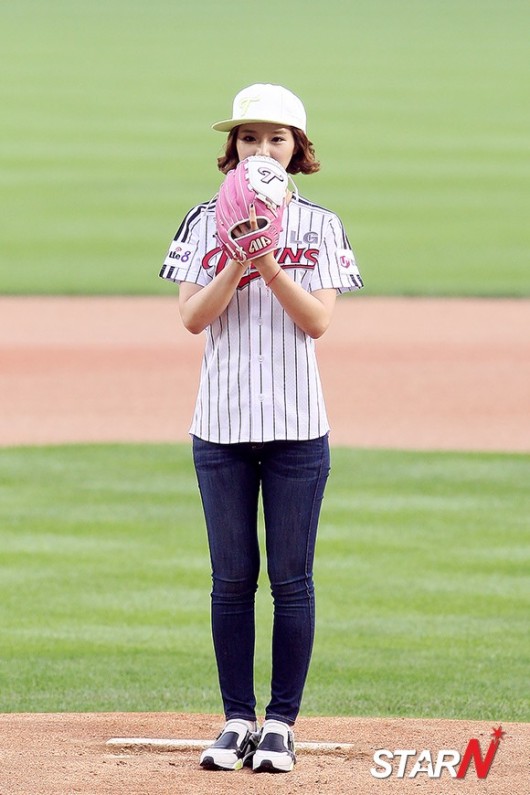 ‘2014 한국야쿠르트 세븐 프로야구’ KIA 타이거즈와 LG 트윈스의 경기가 22일 오후 잠실구장에서 열린 가운데 경기 전 Xtm 아나운서 연상은이 시구행사에 참석했다.