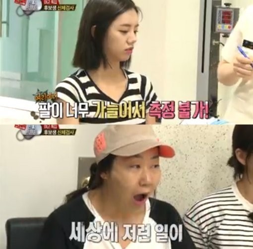 혜리는 기본 신체 사이즈 검사 후 혈압측정을 위해 기계에 팔을 넣었지만 얇은 팔뚝으로 인해 혈압기계가 조여지지 않아 주위를 놀라게 했다.
