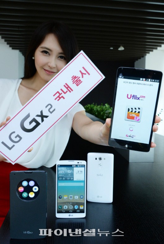 LG전자는 28일 14.47㎝(5.7인치) 대화면 보급형 스마트폰 'LG Gx2'를 LG U + 전용으로 출시한다고 27일 밝혔다. 'LG Gx2'는 지난 7월 같은 하드웨어 사양에 'LG G 비스타'라는 이름으로 북미에 출시된 바 있으며, 작년 12월에 출시한 LG 유플러스 전용 모델 'LG Gx'의 후속 제품이다. 'LG Gx2'는 3200mAh 대용량 배터리를 장착해 LG U +의 다양한 라이프스타일 맞춤형 UX(사용자 경험)의 보는 즐거움을 높였다.