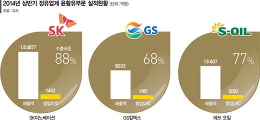 윤활유 선발 업체들의 수출비중도 내수와 비교하면 압도적으로 높다. SK의 윤활유 수출비중은 올 상반기 88%였고, GS칼텍스는 68%, S-OIL은 77%였다.