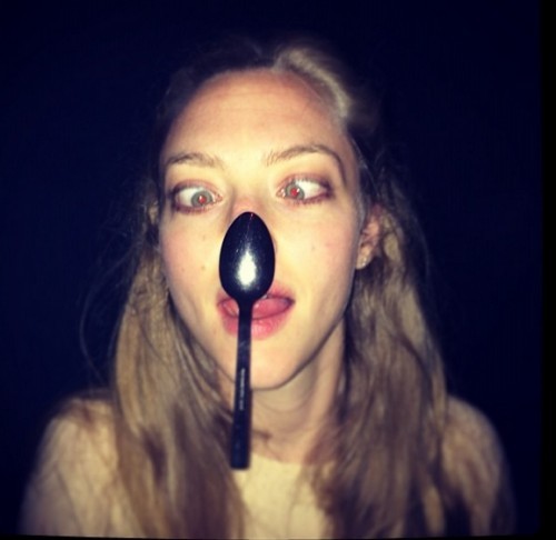 공개된 사진 속 아만다 사이프리드는 숟가락을 코에 붙인 채 눈을 중앙으로 모으는가 하면, 메롱을 하면서 엽기적인 표정을 짓고 있다.