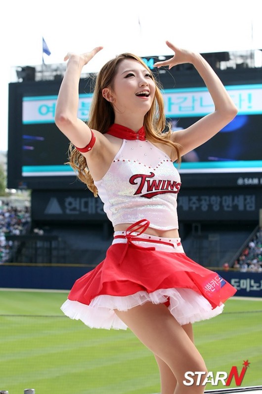 ‘2014 한국야쿠르트 세븐 프로야구’ 삼성 라이온즈와 LG 트윈스의 경기가 14일 오후 잠실구장에서 열린 가운데 LG 치어리더가 멋진 응원을 선보이고 있다.