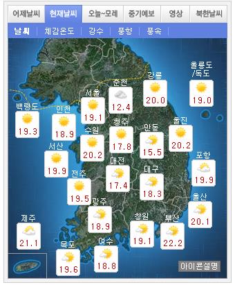 아침 최저기온은 8도에서 19도, 낮 최고기온은 21도에서 29도의 분포를 보이겠다.