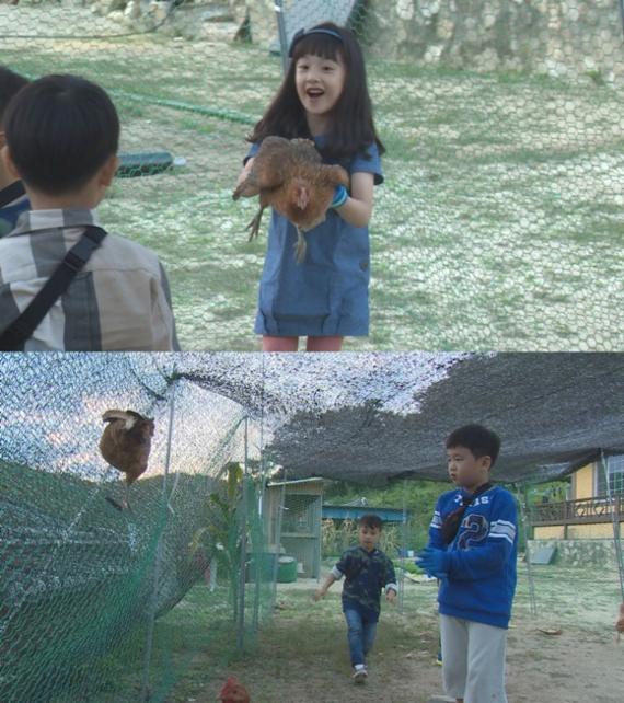 앞서 진행된 촬영에서 아이들은 함께 온 친구들과 저녁식사 재료 구하기에 나섰다. 이번 여행의 저녁식사 주메뉴는 닭요리. 아이들은 백숙에 쓰일 닭을 구하기 위해 용감하게 닭장으로 갔다.