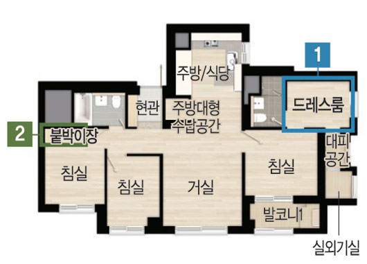 3면 발코니 주택형이 특히 인기를 끄는 것은 일반적으로 자녀방 1개 크기 면적이 늘어나지만 비용 면에서도 큰 부담이 없기 때문이다.