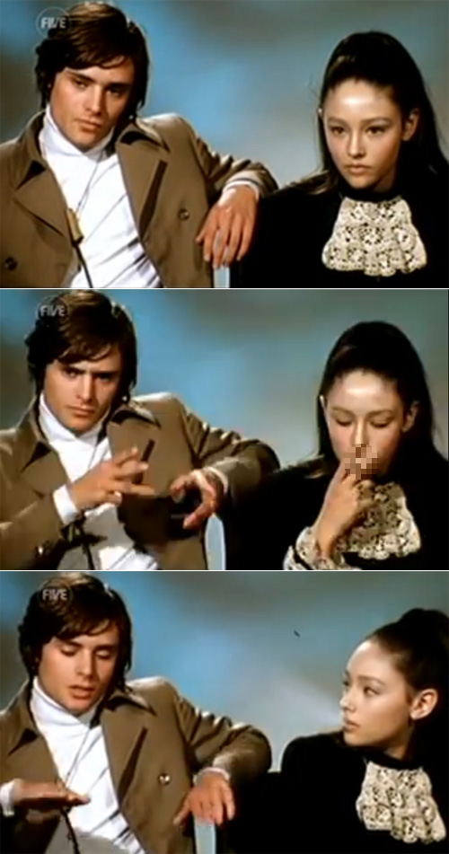 당시 17세였던 올리비아 핫세는 인터뷰 중 자연스럽게 담배를 피고 있어 충격을 준다.