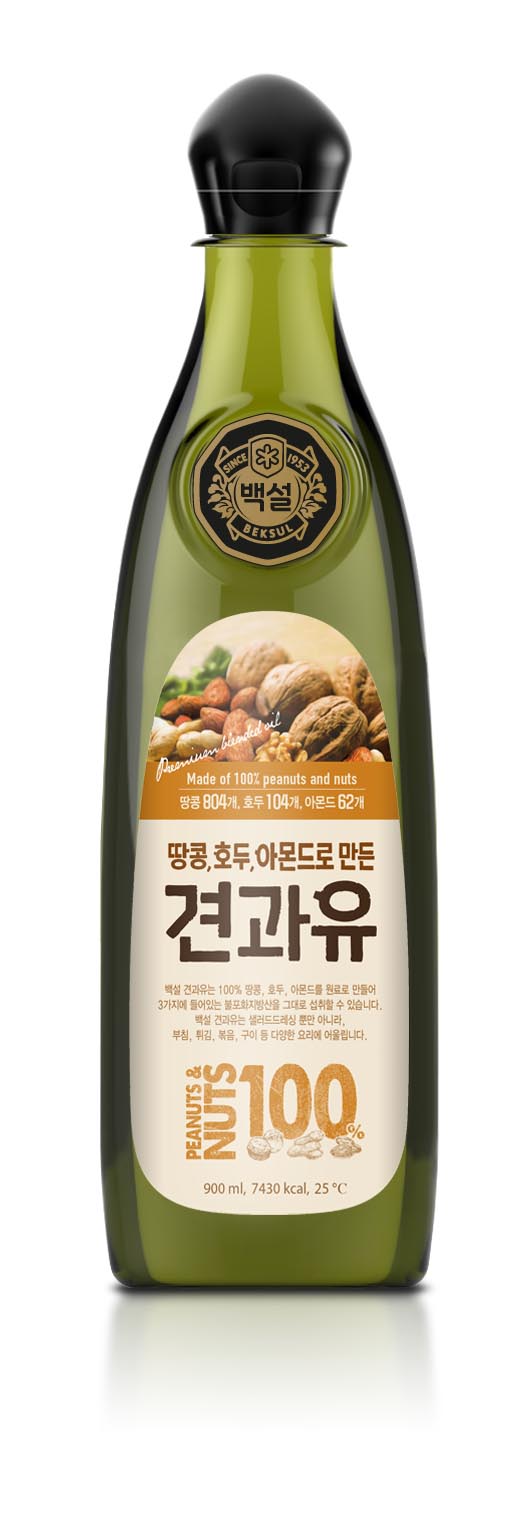CJ제일제당이 100% 땅콩, 호두, 아몬드로 만들어 견과류의 불포화지방산 영양을 담은 '백설 견과유'(사진)를 출시했다.