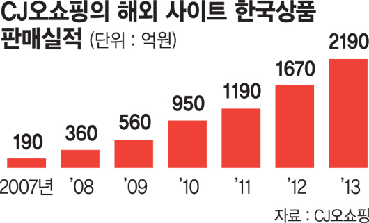 CJ오쇼핑을 통해 제품력을 인정받고 해외시장에 진출한 대표적 브랜드는 락앤락, 리체나, 해피콜, 도깨비방망이, IPKN 등이 있다. CJ오쇼핑은 지난 한 해에만 2190억원의 한국 상품을 판매했으며 이 중 70%가 중소기업 상품이다.
