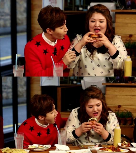 이 외에도 먹음직스러운 수제 햄버거를 눈앞에 놓고 슈퍼주니어M 멤버들을 기다리면서 “벌서는 거에요?”라고 물으며 손을 떠는 초조한 모습을 보이고, 조미의 “누구 때문에 오신거에요?”라는 질문에 햄버거를 가리키며 “이것 때문”이라고 대답하는 등 폭풍식탐을 자랑하며 좌중을 폭소케 했다는 후문이다.