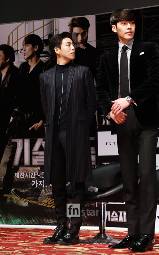 배우 이현우, 김우빈이 18일 오전 서울 광진구 건대롯데시네마에서 열린 영화 ‘기술자들’ 제작보고회에 참석해 입장을 하고있다. 영화 ‘기술자들’은 동북아 최고 보안 인천세관에 숨겨진 검은 돈 1,500억을 제한시간 40분 안에 털기 위해 모인 이야기. 김우빈, 김영철, 고창석, 이현우, 조윤희, 임주환, 조달환, 신구등 출연하는 ‘기술자들’은 오는 12월 개봉./ fn스타 fnstar@fnnews.com 김현우 기자
