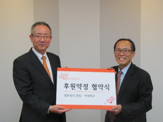 법무법인 광장 공익활동위원회는 1일 탈북청소년 대상 대안학교인 여명학교와 후원금 협약식을 체결했다고 밝혔다.