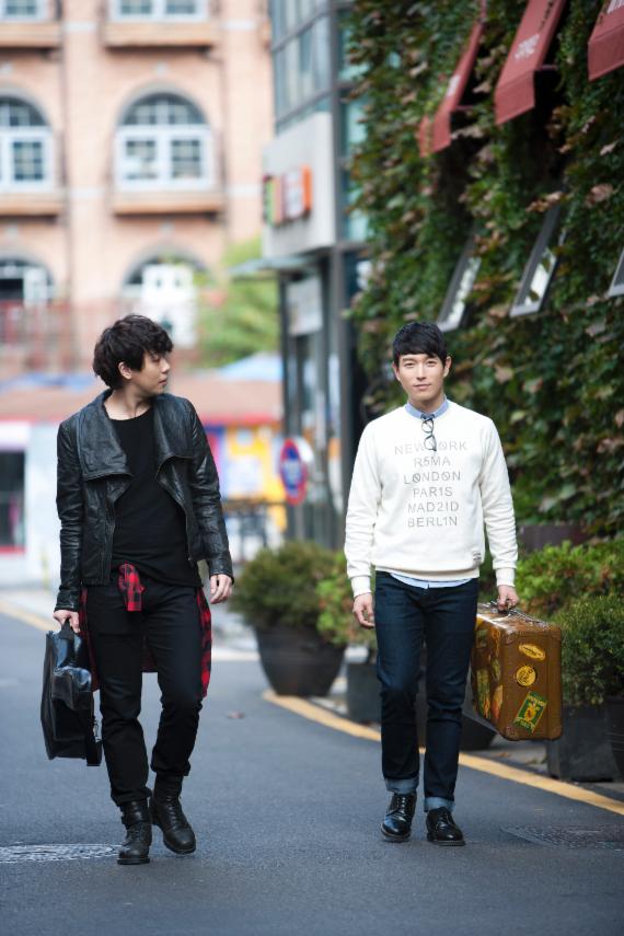 28일 초연 개막한 뮤지컬 '마이 버킷 리스트'에서 강구 역을 맡은 배우 박유덕(왼쪽)과 해기 역의 배두훈. (사진=라이브 제공)