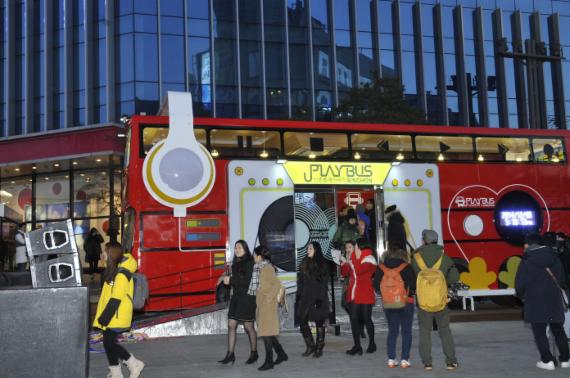 DJ박스를 활용한 거리공연이나 프러포즈 등을 위해 신촌플레이버스를 대여할 수도 있다.