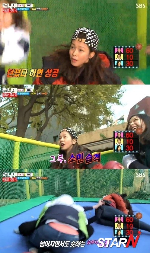 이날 방송에서 경수진은 전소민과 한그루와 함께 트램펄린 위에서 농구대에 골을 넣어야 하는 게임에 참여했다. 방송내내 입가에 미소를 지으며 조신한 매력을 뽐냈던 경수진은 게임에 들어가자마자 승부사 기질을 발휘해 눈길을 끌었다.