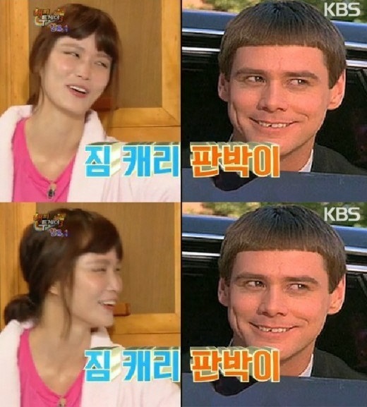 해피투게더 송경아가 짐캐리 닮은꼴로 화제다.